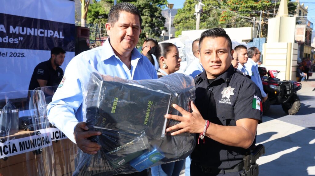 Durante este acto, elementos de la Policía Preventiva Municipal, Protección Civil Municipal, Tránsito Municipal y choferes de ambulancias recibieron uniformes oficiales, equipo táctico, equipo antimotín y unidades móviles, entre las que destacan dos camionetas y una cuatrimoto, destinadas a fortalecer las labores de patrullaje, prevención del delito, reacción inmediata y atención de emergencias en todo el municipio.